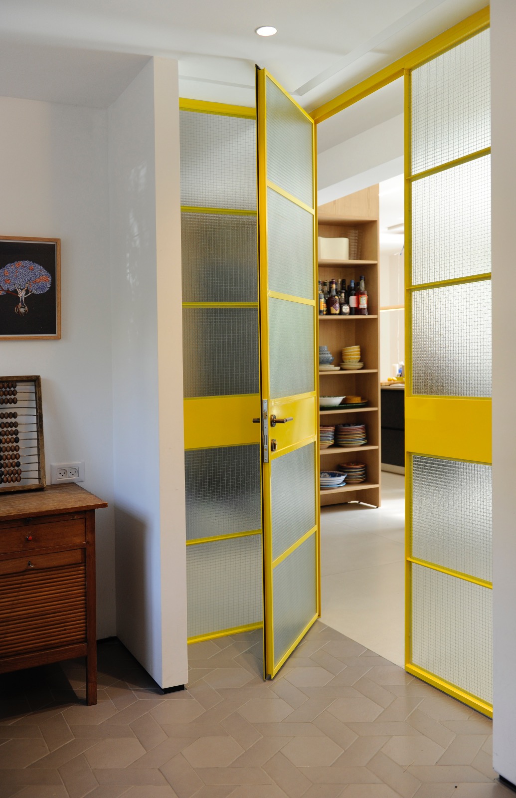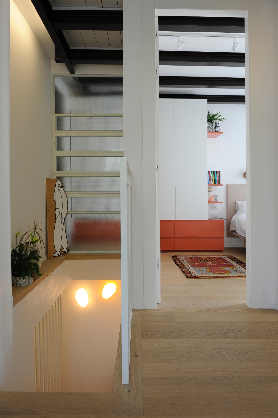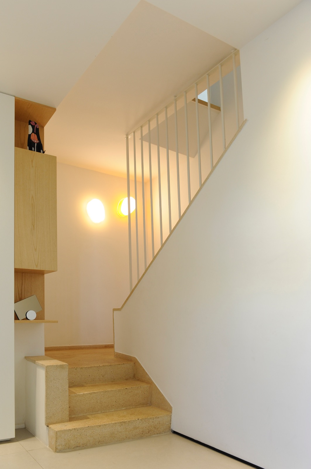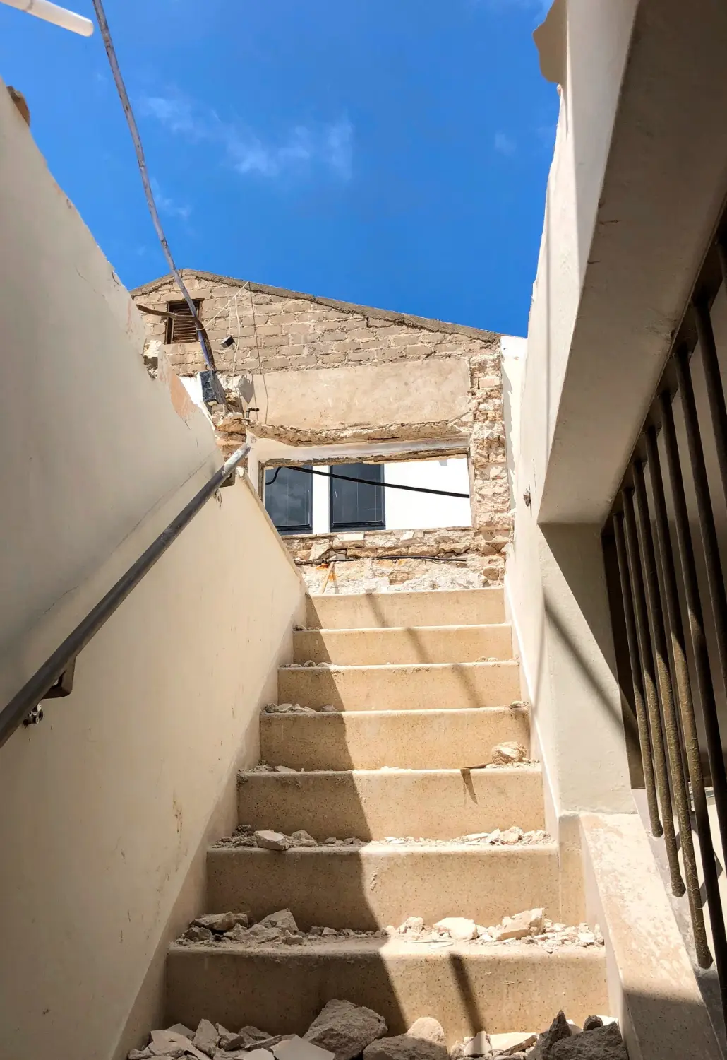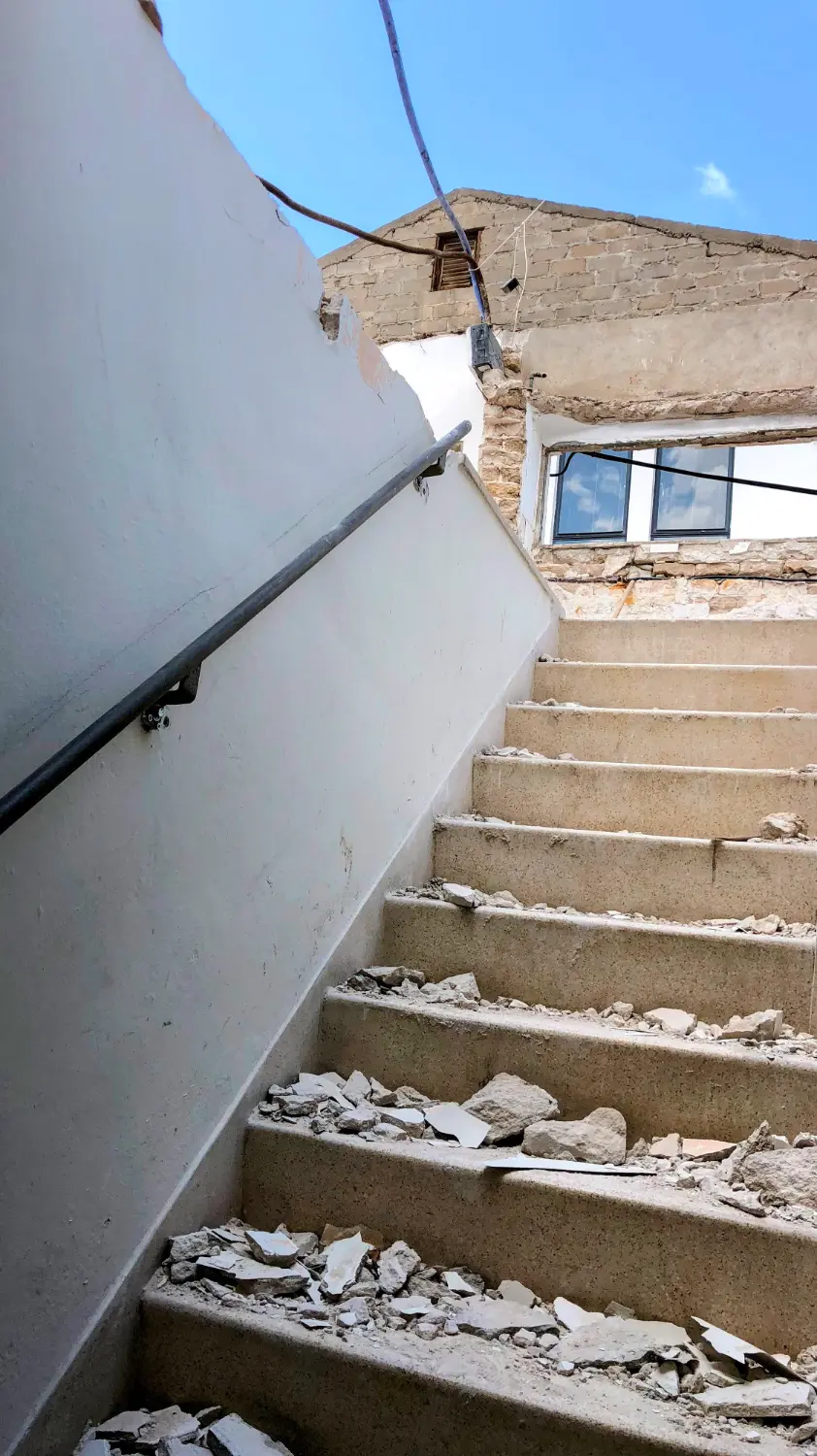 לצד בנייתו של רוב הבית מחדש, הוחלט לשמר את המדרגות המקוריות בין קומת הכניסה לחדרים העשויות טרצו איכותי, פרט שאין לו תחליף בעיני.