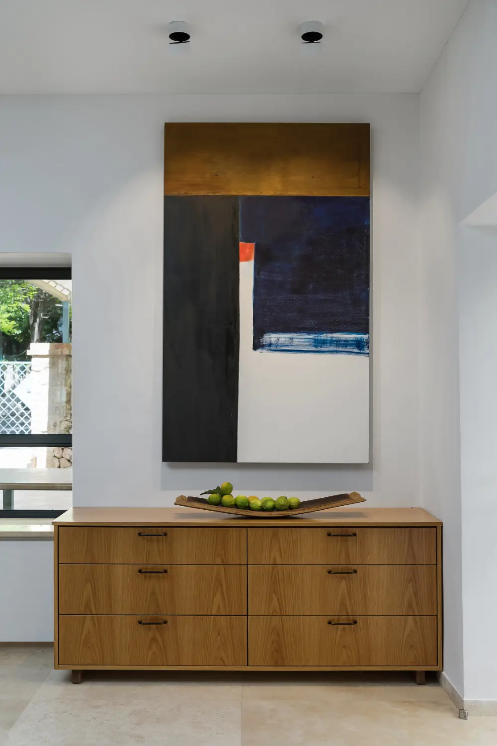 תהליך התכנון והעיצוב כלל ביקורים בביתם הישן של הלקוחות, בהם נחשפנו לאוסף עשיר של ריהוט, חפצים ואמנות, בעיקר ישראלית. מלכתחילה היה ברור שהבית החדש ייבנה סביב האוסף הזה: שהעיצוב יהיה פרקטי, מאופק ופשוט- רקע נקי שיאפשר לאוסף הזה לבלוט.