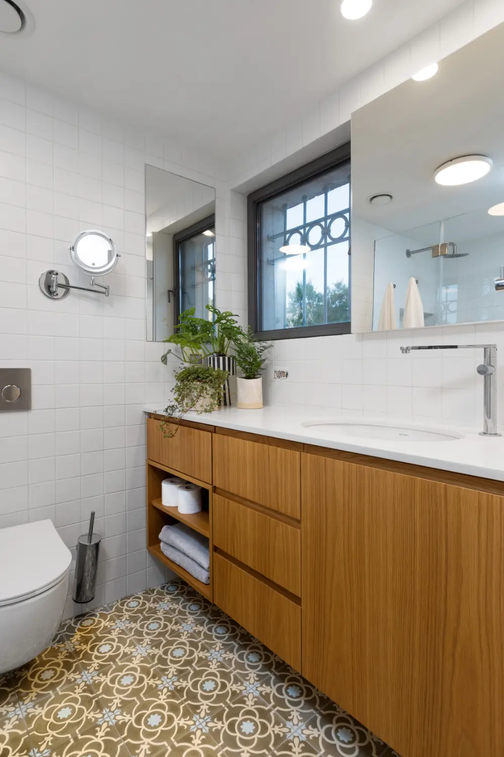 כך נוצר שילוב הרמוני בין אותנטיות ירושלמית לסגנון עכשווי, רגוע ומואר.